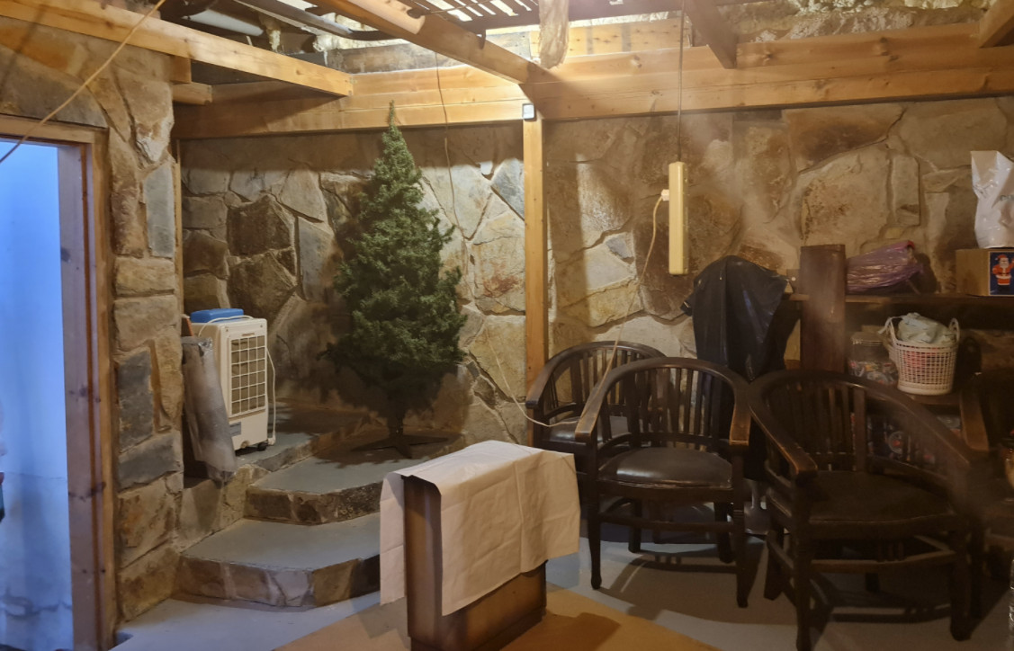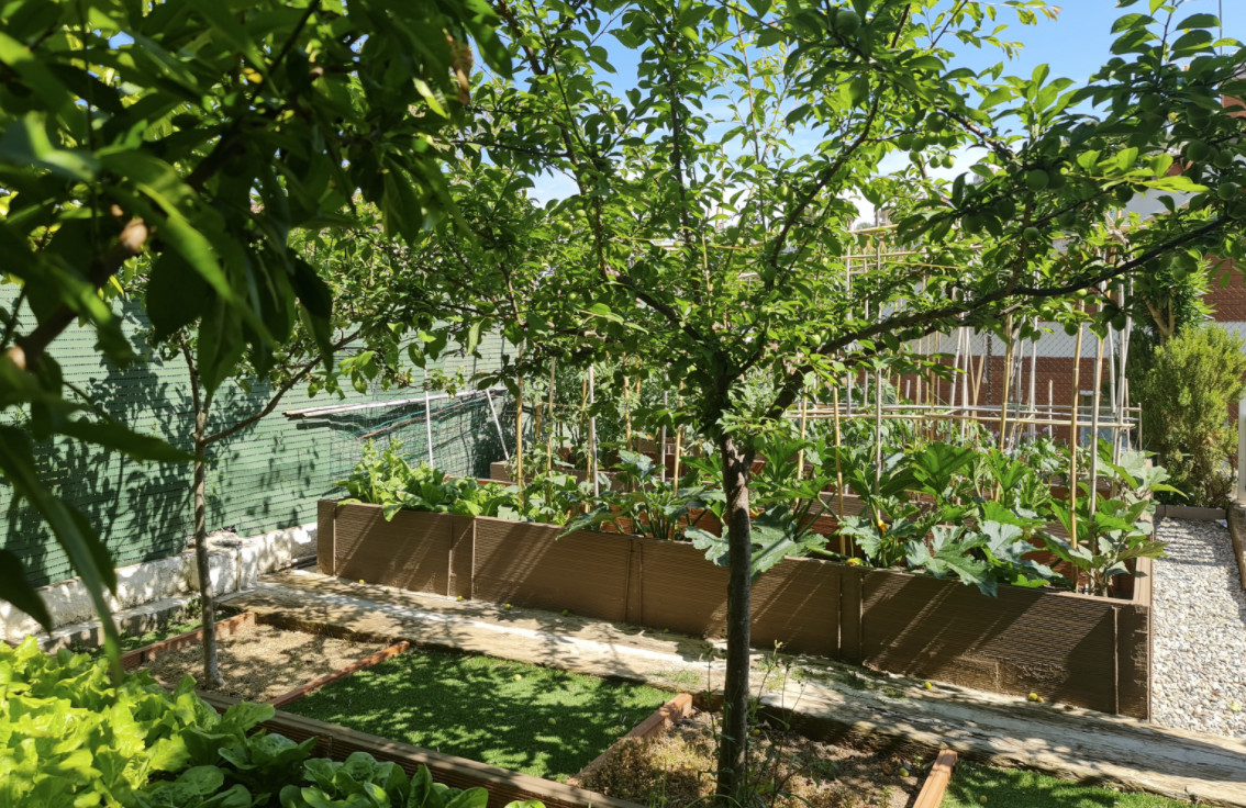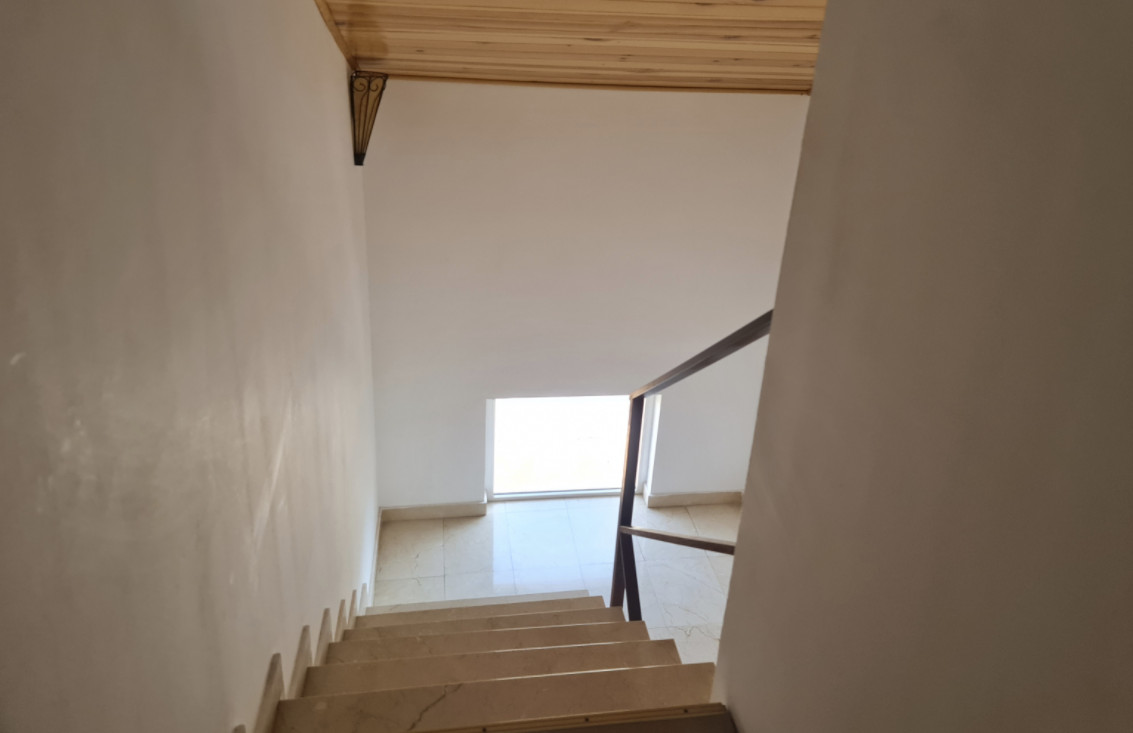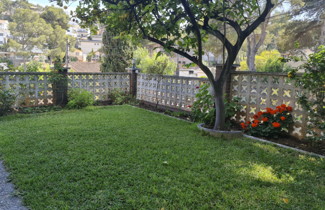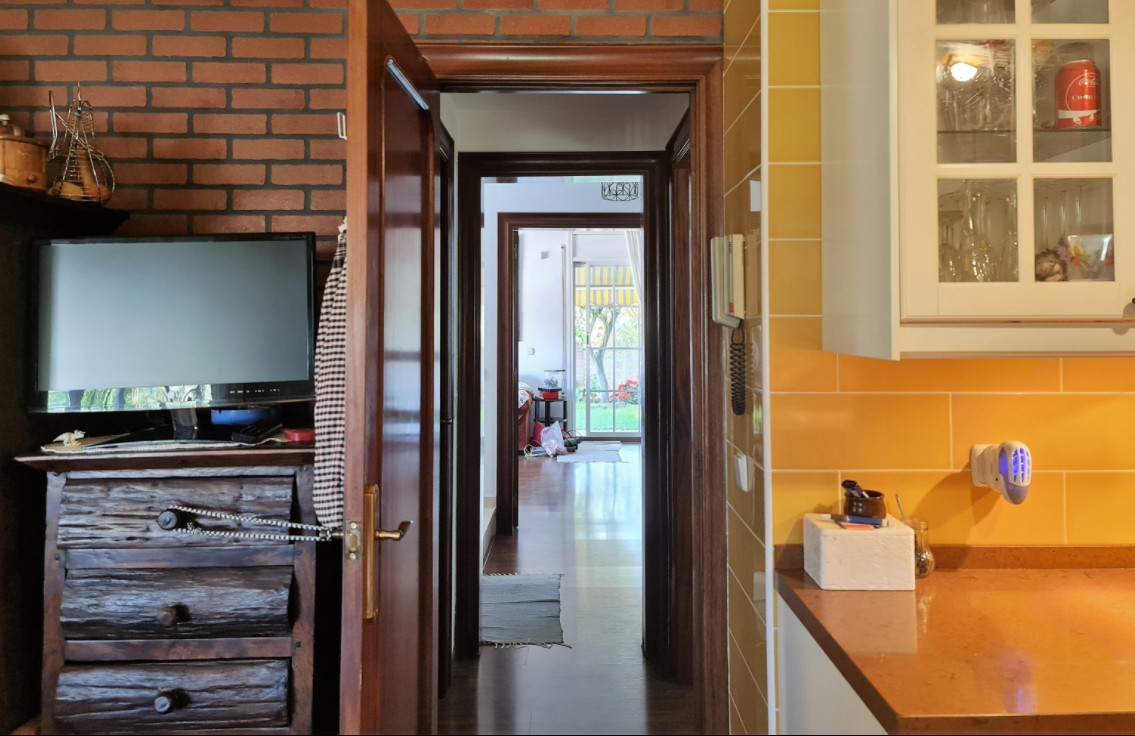 Цокольный этаж с гаражом очень просторный, на три машиноместа. Здесь также есть мастерская и большой подвал. Внутренняя лестница ведет из гаража на первый этаж, где оборудована дневная зона, также здесь гостиная, очень светлая, с прекрасным видом и с выходом в сад, поросший травой, с цветочными клумбами и красивым лимонным деревом. На этом же этаже спальня, открытая ванная комната и большая кухня со встроенной столовой, с выходом в другой очень ухоженный фруктовый сад. Здесь сразу 2 террасы, зона барбекю, кладовая и прачечная.