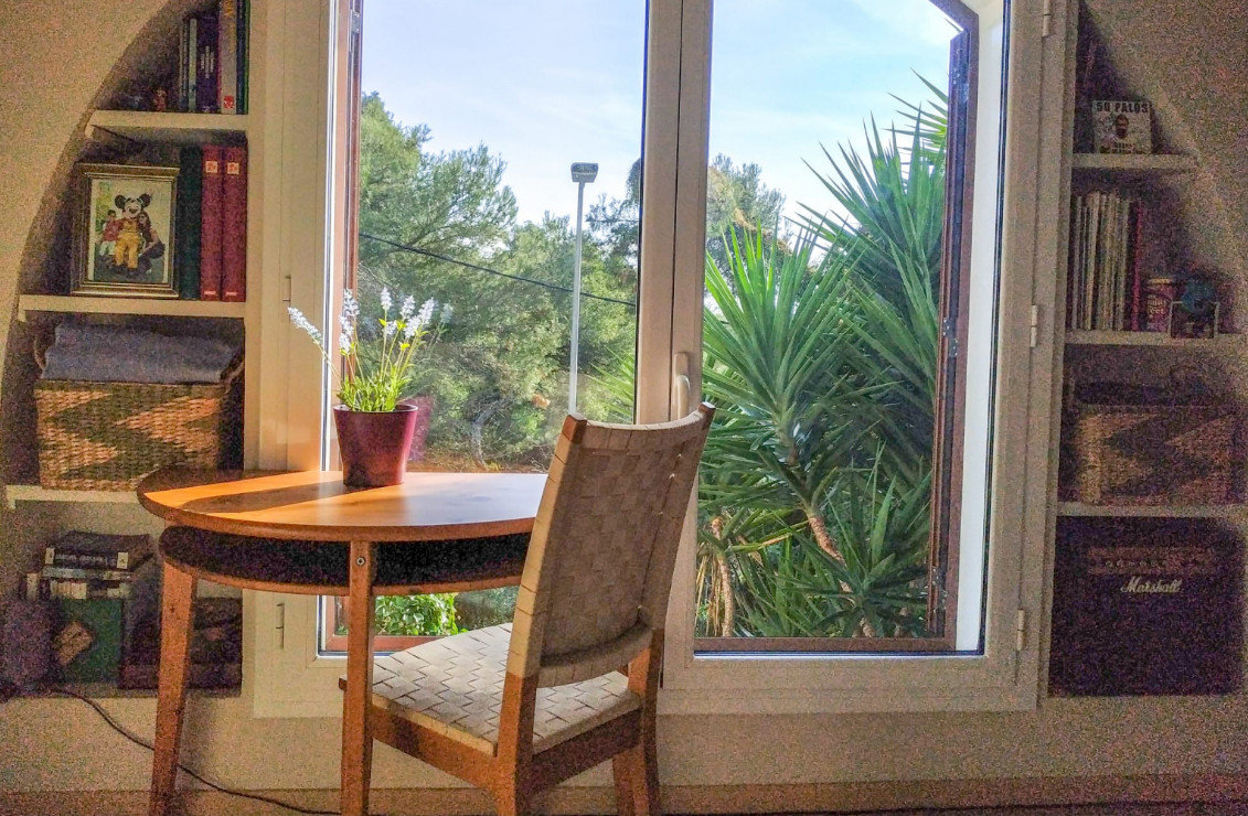 В гостиной огромные окна с видом на море, которое также видно из кухни или из любой части комнаты.