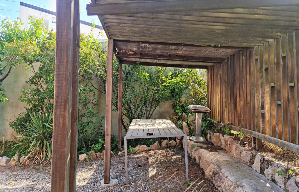 Дом окружен садом и открытыми площадками, в том числе с красивым бассейном и деревянной беседкой в качестве площадки для барбекю.