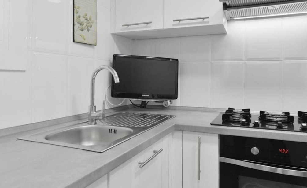 В апартаментах 4 спальни: одна одноместная и 3 двухместные. Также есть кухня с новым ремонтом и гостиная с выходом на балкон, ванная комната и прачечная. Установлены алюминиевые стеклопакеты. Из окон открывается красивый вид на горы.
