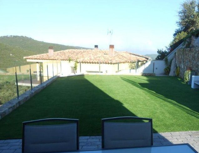 Рядом разбит сад с искусственным газоном, есть возможность построить бассейн и внутренний лифт. В доме установлена система отопления и кондиционирования, панели солнечных батарей.