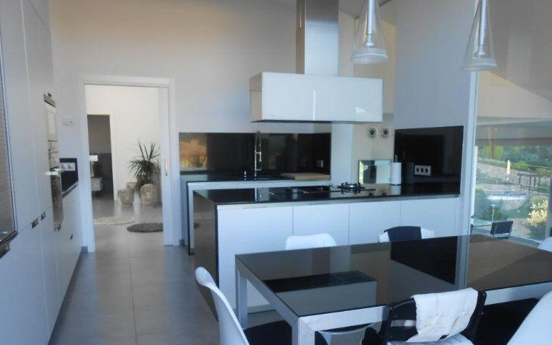 Эта роскошная вилла очень светлая благодаря большим окнам, из которых открывается живописный вид на горы. Внутренние помещения с 1-качеством отделки, дизайн в современном стиле.