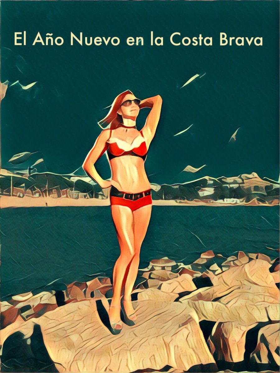 Новогодняя открытка на фоне нашего городка Sant Feliu de Guixols , позировала моя жена. Фото сделано 31.12.2016.