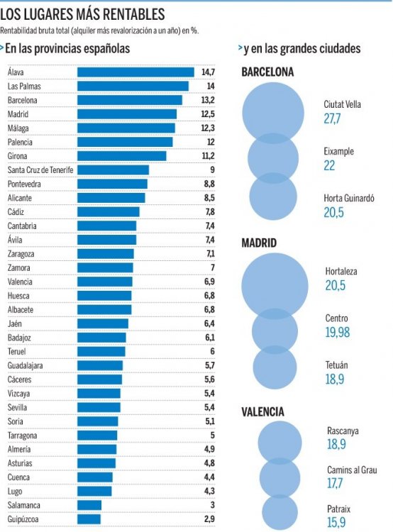 Мадрид, Барселона и окрестности, Коста-дель-Соль и Балеарские острова являются наиболее привлекательными районами Испании в смысле рентабельности. Испанский рынок недвижимости переживает лучшие моменты. Средняя цена квартиры в стране растет уже который год. Да и прогнозы более чем позитивные: Сэмюэл Побласион, национальный директор по жилищным вопросам известной всем CBRE, сообщает, что в среднем в Испании вот уже третий год подряд рост цен на жилье составляет не менее 5%, и эта динамика продолжится. При этом в отношении Мадрида и Барселоны эти цифры доходят до 10% в год. В случае аренды ситуация похожая. Чистая доходность квартиры, купленной для последующей аренды (ставка, которая включает в себя рост стоимости квартиры за 12 месяцев и арендную плату за тот же период) уже составляет 8,8% для Испании) данные на 2018 год). В среднем, аренда в Испании показывает рентабельность от 4,5% до 6%. При этом, как видно из таблицы, лучшими зонами для инвестиций в жилье являются Мадрид и Барселона, а также их окрестности, даже Малага и Коста дель Соль, Балеарские острова и Аликанте. Валенсия, по словам Хосе Луиса Руиса Бартоломе, управляющего партнера Chamberi AM, также набирает обороты, а в Вальядолиде, Сарагосе и Ла-Корунье начинают проявляться признаки улучшения. В Мадриде и Барселоне рост цен на квартиры продолжит увеличиваться из-за возросшего спроса в условиях низкого предложения, поскольку строительство нового жилья еще далека от того, что страна может поглотить. Сейчас новое строительство насчитывает 60 000 объектов по Испании, по сравнению с 150 000, на которые есть спрос. Кто сейчас покупает недвижимость в Испании? (Профиль покупателя в городах Испании) Основной профиль: Это семья с детьми и стабильным доходом, которые нацелены на покупку квартиры с 3-4 спальнями, около 110-140 квадратных метров. Если это инвестор, то обычно он заинтересован в небольшом жилье 60-70 метров с 2-3 спальнями. Средний арендатор - молодой человек, без семьи, который не может позволить себе платить за ипотеку из-за отсутствия стабильной работы. Хесус Марти, аналитик по акциям Invermax, добавляет, что покупатель и, прежде всего, все больше ориентируются на близость будущего дома к рабочему центру при поиске места жительства. То есть работа (места, где можно ее легко найти и доехать) выходит на первое место. Профиль покупателя на побережье - это чаще всего иностранный инвестор. Игнасио де ла Торре, главный экономист Arcano, указывает, что 15% всего рынка для покупки жилья в Испании осуществляется иностранцами, а в случае Малаги этот показатель составляет 30%. При выборе недвижимости для инвестиций эксперты советуют не увлекаться дешевыми сделками. Цена продажи недвижимости может быть дешевой, но, из-за странного соседства, вероятно, возникнут трудности с получением стабильного дохода по аренде.. Имейте в виду, что один месяц задержки в оплате ежемесячного платежа арендатором может поставить под угрозу цели рентабельности имущества. С уважением, Наталия Маджик©, 2018 Юрист, специалист по недвижимости и открытию бизнеса в Испании, налоговый администратор, автор правовых и экономических обзоров по Испании. Ещё о недвижимости в Испании: Квартира с 2 спальнями 60 метров в доме без лифта – самая выгодная инвестиция в Испании Недвижимость в Испании вскладчину. Как стать инвестором? Испанские инвестиции вес