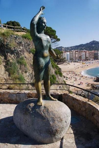 Замок на пляже Замок, который является популярным символом Ллорет де Мар, построен недавно – в 40-х годах. Изначально здание возведено под личную резиденцию Нарсиса Плаха. Тогда строительство замка для промышленника из Жироны понравилось далеко не всем жителям города, в том числе городским властям. Сегодня же этот замок, созданный по проекту архитектора Исидора Бош, – излюбленное туристами местечко для фотосъемки в Ллорет де Мар. Скульптура Дона Маринера Скала, завершающая пляж Льорет, украшена бронзовой статуей женщины, смотрящей в море. Это один из символов города: Дона Маринера – жена моряка, которая ждет своего супруга из плавания. Скульптуру изготовил в 1966 г. Эрнест Марагал. По преданиям, статуя помогает человеку увидеть пути осуществления его целей. Нужно взглянуть, подобно Доне, в море, прикоснувшись рукой к ее ноге, и подумать в эту минуту о своем сокровенном желании. Скульптура Эсгуард в Ллорет де Мар Этот монумент открыли к международной встрече болельщиков ФК Барселоны «Penyes Barcelonistes» в 2000 году. Металлическая скульптура авторства Розы Серра представляет собой конструкцию с шаром в центре. Считается, что в этом шаре заключены два символа: футбольного мяча – в честь события, к которому приурочена скульптура, и земного шара – в знак того, что в Ллорет де Мар съезжаются туристы со всех уголков планеты. Копия Каналетского фонтана в Ллорет де Мар Каналетский фонтан привлекает многих туристов, посетивших Барселону. Считается, что те, кто выпьют из него воды, обязательно возвращаются в Барселону снова, или даже остаются здесь жить. Полюбоваться фонтаном можно и в Ллорет де Мар – в 1968 г. городу подарили его точную копию. Интересно, обладает ли эта копия такими же волшебными свойствами? Монумент Аполлону и Дафне Скульптурная композиция «Аполлон и Дафна», открытая в 2001 году к тысячелетию Ллорет де Мар, воплощает сюжет древней легенды. Дафна – нимфа невиданной красоты – дала обет безбрачия, но бог Аполлон полюбил ее. Тогда нимфа, спасаясь от его настойчивого внимания, превратилась в лавровое дерево. Скульптор Бонавентура Ансо выполнил фигуру Дафны в Ллорет де Мар из красного мрамора. Аполлон изображен верхом на дельфине, а весь монумент украшен бронзовым лавром. Считается, что «Ллорет» (Lloret) в названии города произошло от слова «лавр», а сам город возник из морских волн. Хотя нам чудится в этом названии «Плач моря» , ведь «llorar» означает по-испански «плакать» Еще одна легенда ЛЛорет де Мар – об Арабе и Красавице. Легенда гласит, что во времена нападений арабов, один богатый владелец домов в мавританском стиле влюбился в красавицу из Виллы. В качества доказательства своей любви, он пригласил её на танец и хотел подарить ей almorratxa - стеклянный сосуд с ароматной водой (по тем временам большая ценность, что сосуд, что парфюм) Но красавица не посмотрела на богатства, не приняла подарок, а в гневе разбила его о камни, храня верность. Танец «les almorratxes» с тех пор стал символом верности, и часто в День Санта Кристины, его танцуют именно молодожены. Это считается хорошей приметой. Поэтому не удивляетесь - на празднике в Ллорет де Мар присутствует не менее 5-6 пар в красивых свадебных гарнитурах. Кстати, на сайте есть Справочник по городам Каталонии, где по каждому городу вы найдете информацию обо всем: как доехать, развлечения, праздники, все пункты 