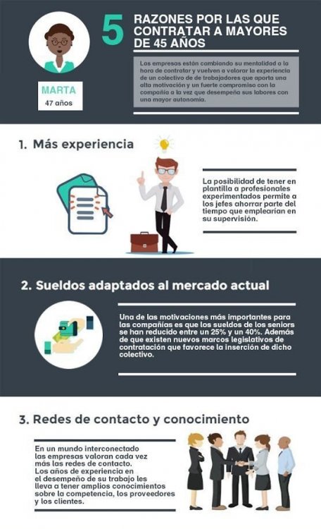 Прошедший в свое время кризис в Европе оставил в Испании свой след: несколько лет в стране держался высокий уровень безработицы, который становится все ниже благодаря ряду мер, которые приняло Правительство Испании. Поощрение трудоустройства идет тут на всех уровнях: Это поощрение самозанятости - Tarifa plana 50 € для autónomos, молодежи и индивидуальных предпринимателей старше 30 лет в Испании Это бонусы для работников (например, для работающих мам) И это бонусы и поощрения работодателей при трудоустройстве определенных категорий населения - ряд конкретных мер, который призван стимулировать создание рабочих мест. Работодателю доплачивают за трудоустройство молодежи, инвалидов, женщин, пострадавших от гендерного насилия. Категория 45+ в этом список стоит особняком. Дело в том, что это достаточно молодые люди, хорошо ориентированные на работу и имеющие бесценный опыт, однако работодатели не очень хотят трудоустраивать таких работников, так как управлять ими сложнее. Однако, как показывает практика, те, кто решились на это, очень довольны. Для того, чтобы заинтересовать работодателя, законом введены бонусы за трудоустройство персонала 45+. Бонус 1300 € / год за трудоустройство работника 45+ Работодатели Испании, трудоустраивающие в компанию сотрудника в возрасте 45 и более лет, получают компенсацию за взносы в фонд социального страхования в размере до 1300 евро в год (за найм мужчины или женщины). И 1500 евро в год – за женщину, если компания работаете в секторе, где женщины традиционно составляют меньшинство. Кто может рассчитывать на помощь: Только небольшие компании – то есть те, где штат сотрудников не более.50 человек. Кроме того, бонус предоставляется только для бессрочных контрактов на полный рабочий день. Бонус работодателю в Испании за найм работника старше 52 лет Если работодатель трудоустраивает сотрудника, возраст которого составляет 52 и более года, - это еще выгоднее. Помимо бонуса 45+ он может также рассчитывать на скидку по оплатам в соц страх. Размер льгот каждый год устанавливается Министерством труда и социального обеспечения Испании. Скидка 100% на оплату взносов в Seguridad Social для начинающих предпринимателей Для того, чтобы роста предпринимательства был стабильным, правительство Испании создало еще один стимул, который могут получить новые компании. Так, новый предприниматель при заключении контракт с работником 45+ на неопределенный сро и на полный рабочий день, имеет в право на скидку 100% на оплаты за социальное обеспечение. Трудоустройство людей старше 65 лет При трудоустройстве работника в 65 лети старше, у которого есть полный страж для пенсии (38 лет и 6 месяцев вклада в систему социального обеспечения или возраст 67 лет и 37 лет вклада) по бессрочному контракту, компания сможет воспользоваться освобождением от некоторых оплат фирмы, а конкретно reducción del 100 % en la cuota empresarialque paga por contingencias comunes. Трудоустройство людей старше 45 лет с инвалидностью Люди с ограниченными возможностями даже в Испании сталкиваются с трудностями, которые затрудняют доступ к рынку труда. Если им более 45 лет, все становится еще сложнее. Это привело принятию правительством Испании еще одной меры для поощрения трудоустройства для постоянных контрактов и также, как ни странно - даже для некоторых временных контрактов: 1. В случае найма инвалида возрасте старше 45 ле