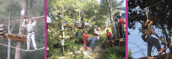 Парк развлечений Jungle-Trek предлагает своим посетителям отправиться в 3-х часовое приключение в высоту, с безудержным весельем и уникальным опытом в лесу. Перелезть мост как обезьяна, пройтись по верёвочному мосту, по паутине или проехаться вниз? Решайте сами, всё абсолютно безопасно, так как все развлечения проходят под наблюдением квалифицированных инструкторов. В парке развлечений работает профессиональная команда, которая разработает развлекательное мероприятие конкретно для каждой группы людей. Развлекательная игра представлена в виде увлекательных заданий, которые получиться выполнить только при работе в команде и сообща. В этом случае у каждого есть своя роль в игре, и успех вдвойне приятнее. Предложение «Приключения на деревьях» Выбрав этот вид деятельности, вы попадёте в различные ситуации и на различные уровни сложности. Благодаря «Приключениям на деревьях», вы проверите свои навыки равновесия, координации, интуиции и т.д., ведь приключение проходит на высоте. У инструкторов парка Jungle-Trek есть несколько вариантов «Приключения на деревьях», которые соответствуют физической моторики детей от 4 лет, подростков и взрослых. Безопасность в течении всего тура гарантируется. Все элементы «Приключения на деревьях» максимально приближены к натуральным условиям (не было срублено ни одно дерево). Все конструкции сбалансированные и прочные, а также выполнены из лучших материалов. Проверка конструкций проводится ежедневно до начала мероприятия, чтобы максимально обезопасить пользователя. Альтернативная деятельность Для завершения дня в парке развлечений Jungle-Trek, вы можете выбрать одно из нескольких альтернативных мероприятий, которые проводятся внутри парка либо на территории. Деятельность в команде со сверстниками Подобные мероприятия учат вашего ребёнка работать в команде. Вся команда сообща должна решить сложную проблему, найти выход из новой ситуации, изучив её предварительно. Цель будет достигнута только при командной работе. Обучение ориентации по местности При помощи этого вида деятельности ваш ребёнок научиться ориентироваться по местности при помощи карты, компаса, при этом открывая для себя интересные места и заливы средиземноморского побережья. Jungle-Trek предлагает 6 маршрутов различного уровня сложности: Маршрут для начинающих (научиться и практиковать) Маршрут для начинающих обязательно нужно пройти каждому посетителю парка прежде чем отправиться к «Исследовательскому маршруту» или «Рискованному маршруту». Опытные инструктора научат вас правильному и безопасному способу перелазить по деревьям. Для детей от 7 лет и ростом от 115 см. 5 видов деятельности для обучения на высоте не более 2.5 метров от земли. «Коалы», развлечение для самых маленьких Развлечение предназначено для детей от 4 лет и ростом от 100 см. до 125 см. 13 игр на высоте до 1.50 м от поверхности земли: обезьяний мост, прыжки блохи, шаг паука…. и даже лиана Тарзана. «Исследовательский маршрут», маршрут для всей семьи 13 видов деятельности на высоте от 2 до 7 метров: обезьяний мост, лиана Тарзана, летающие вверх стволы…. Безопасно для всех возрастов. Дети от 7 до 12 лет только в сопровождении взрослых. Для детей от 7 лет, минимальный рост – 115 см. «Рискованный маршрут», развлечение для самых смелых 17 видов деятельности на высоте от 4 до 11 метров над землёй.
